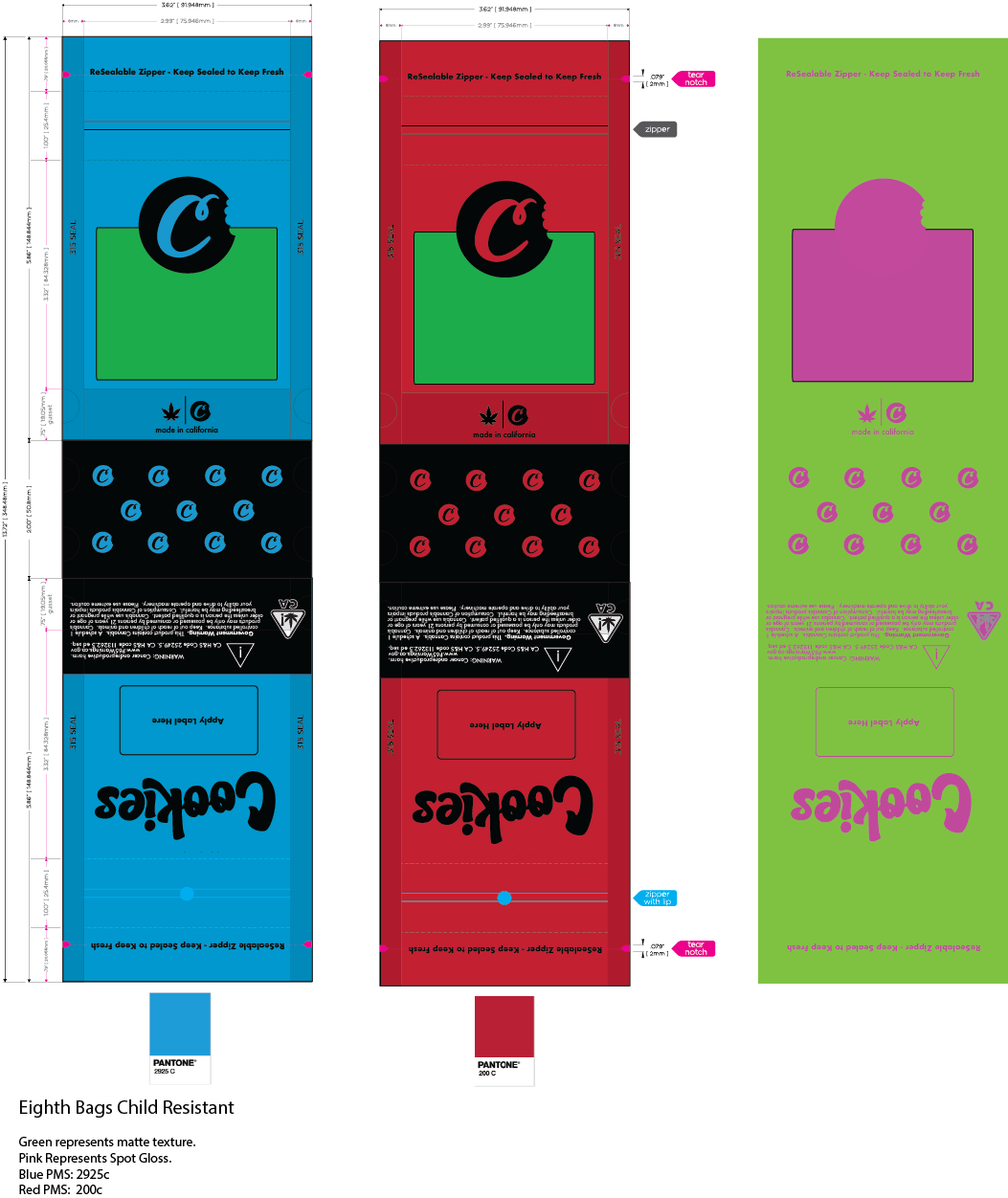 Creating post worthy packaging designs has been a big key to my success. Clients want the packaging to be an experience for the end user and stand out on the shelves. Utilizing custom shapes and different finishes on mylar, I am able to achieve this.